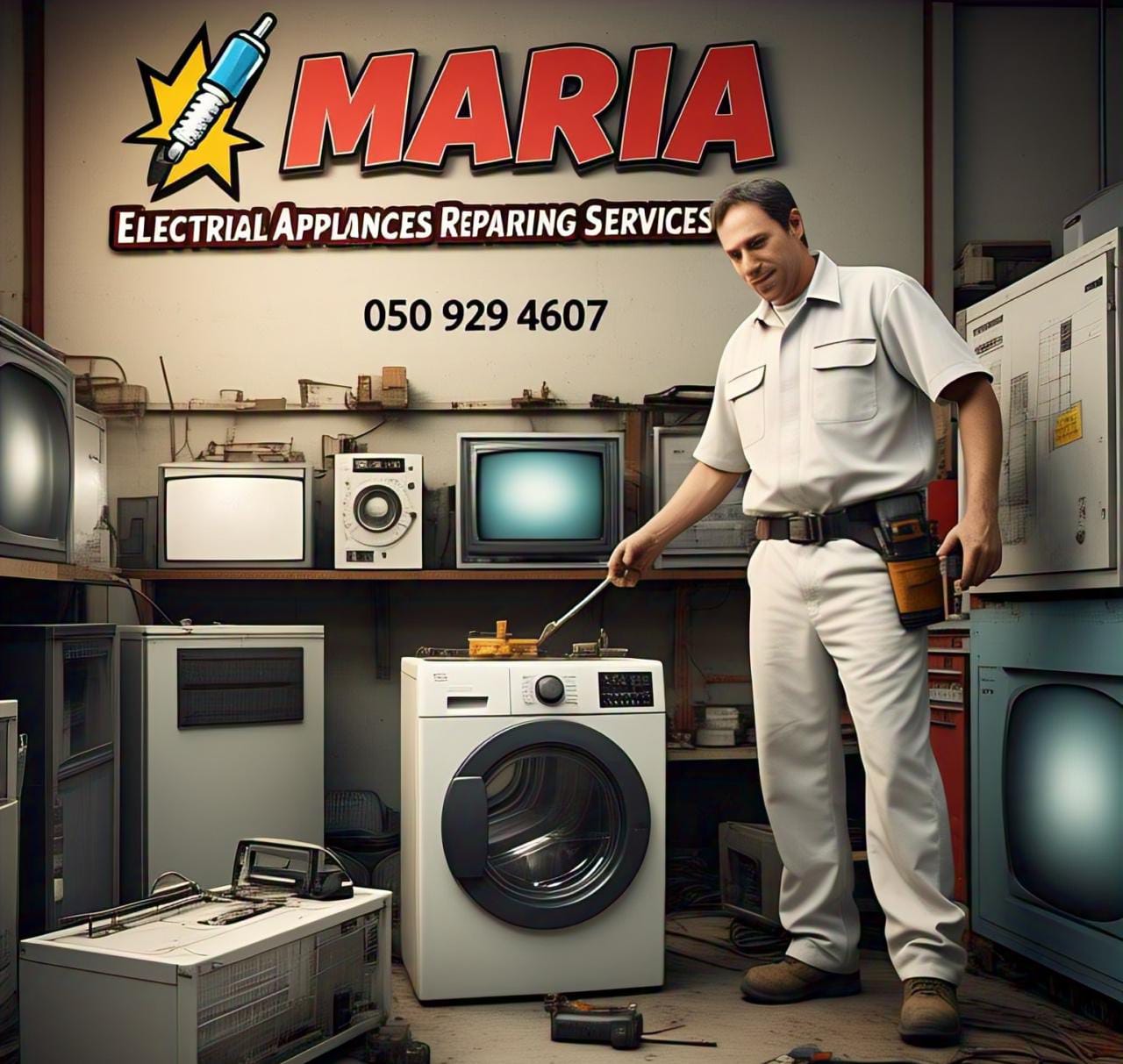 Maria Electrical appliances Repairing Services, specializing in washing machines, refrigerators, ovens, and more.